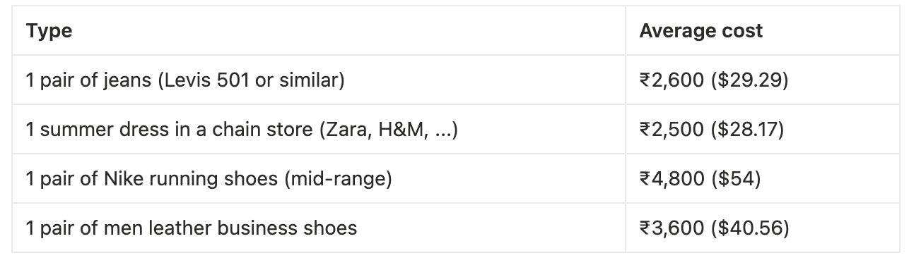 Here’s what a typical clothing budget might look like for someone living in Bangalore:
