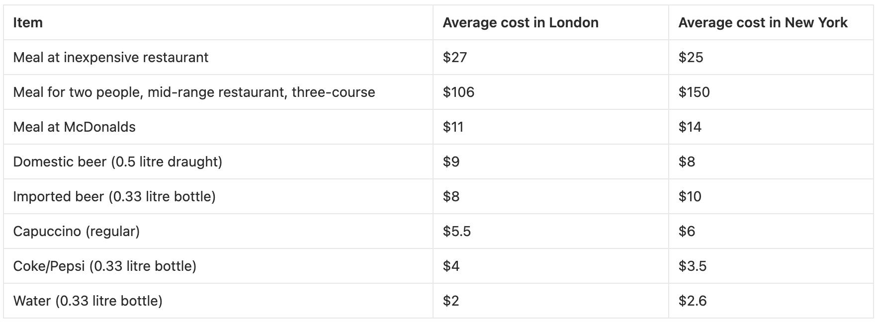 For the average person eating out three to four times a week, that difference soon becomes a problem. You could spend $450 - $600 monthly on casual meals in London or nearly $700 - $900 in New York, and that’s before drinks or tips.