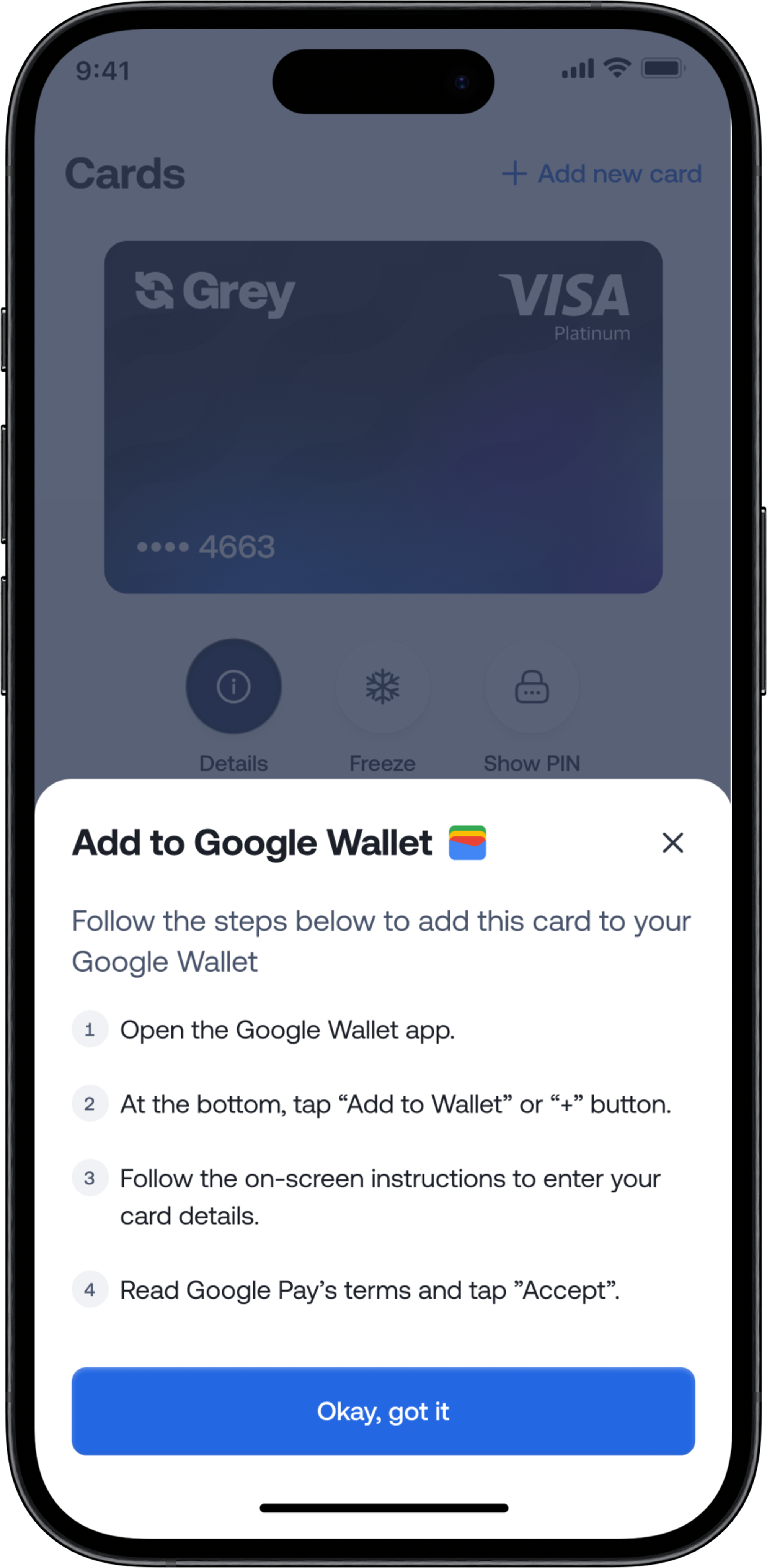 That’s it. Your Grey card is now part of your Google Pay wallet and ready for contactless payments.