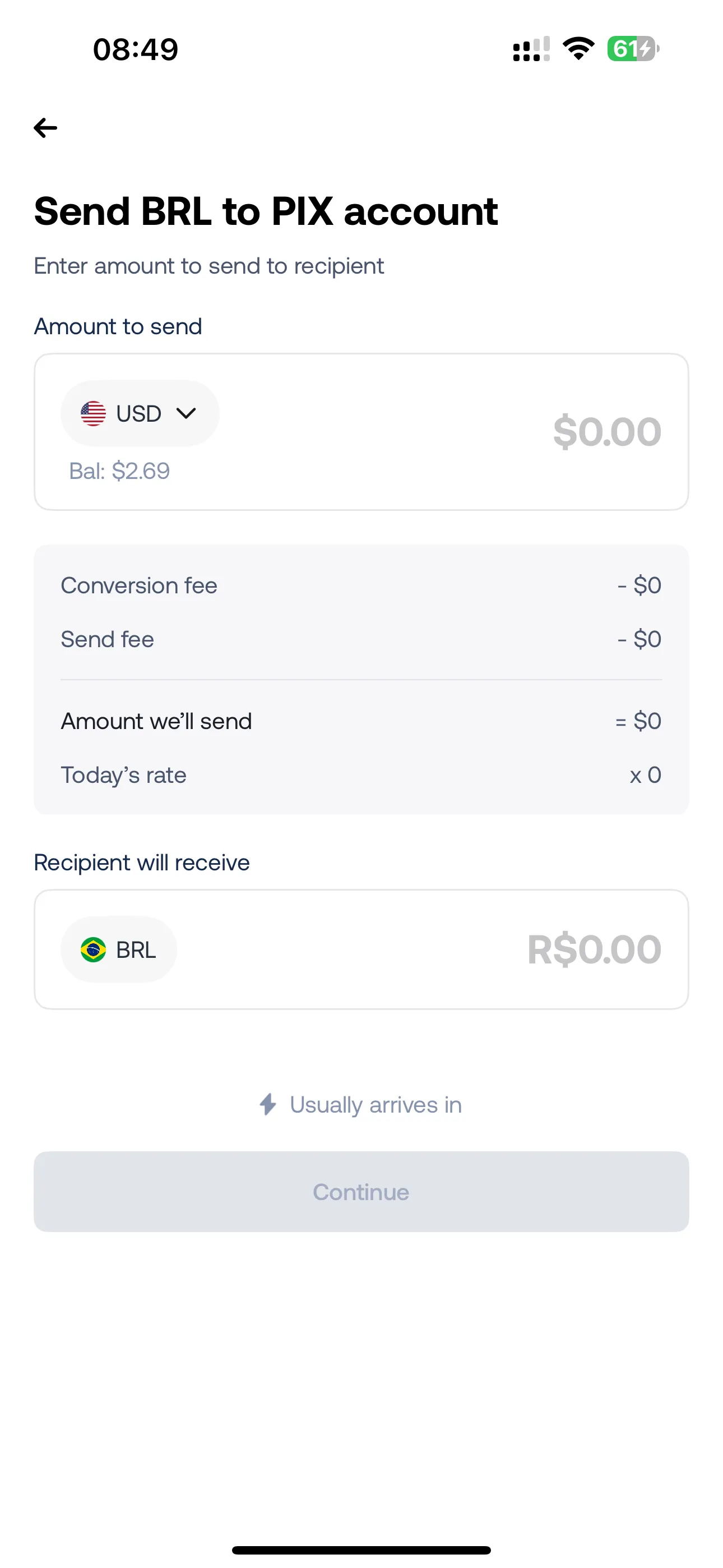 Instant transfers: Just as you can receive money from the US, you can also directly send the BRL equivalent to Brazil. Plus, you can send BRL from Grey to any Brazilian bank. All you need is the recipient’s Pix account number, document and account name.